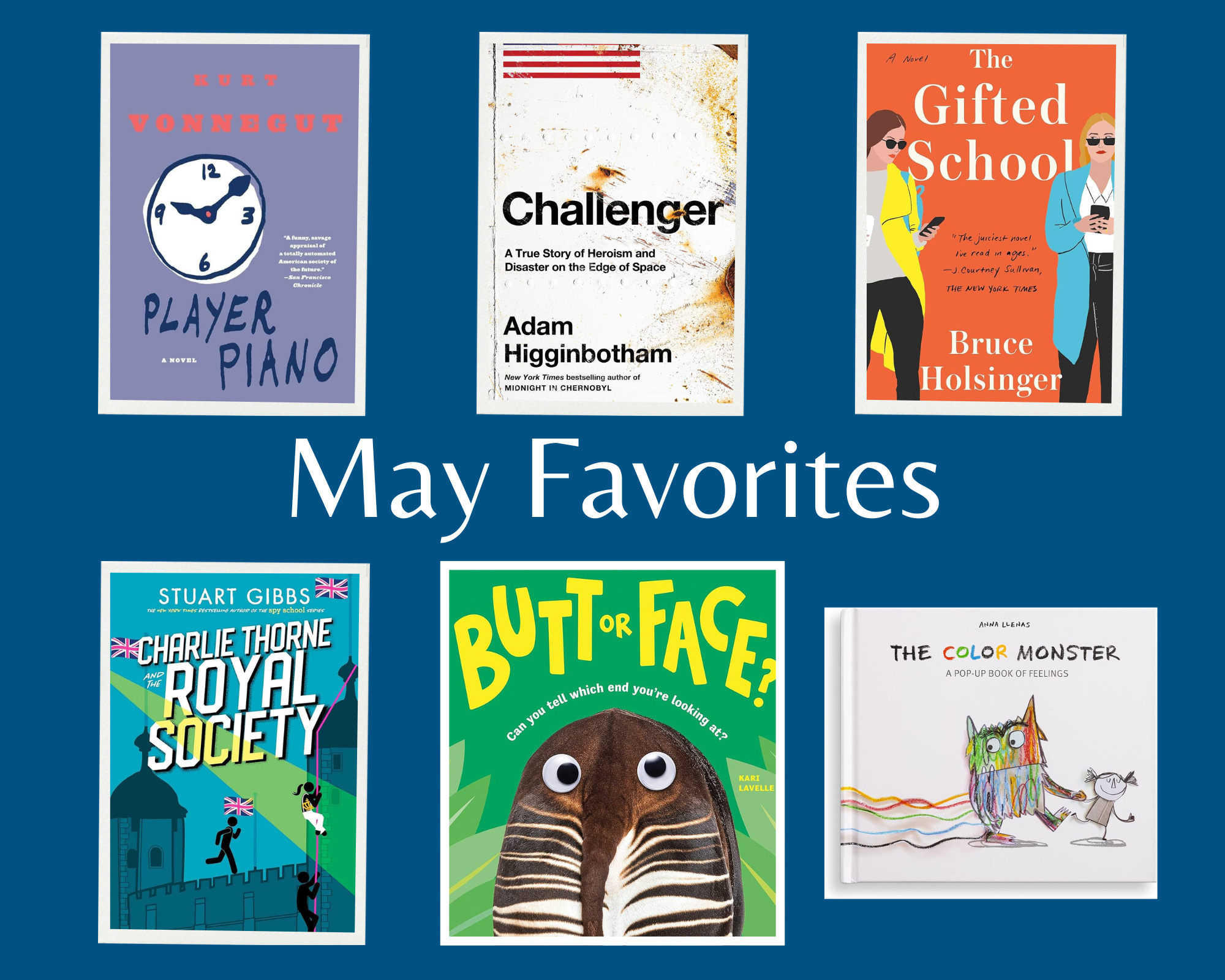 Jeremy: The crazy-busy end of the school year meant less reading this month than usual, but the two books highlighted here are both likely to end up in my year-end favorites. Challenger by Adam Higginbotham is as good as narrative history gets; Kurt Vonnegut’s Player Piano is perhaps the most relevant 70-year-old book I’ve read.