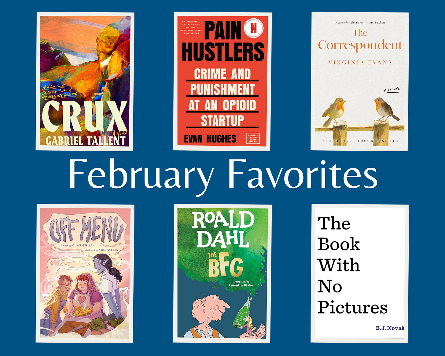 JEREMY: I enjoyed Gabriel Tallent’s Crux way more than I thought I would. The style was memorable (not everyone will love it) and the story was fantastic; it’s all about dreams vs. reality and what brings true fulfillment. I also quite enjoyed Evan Hughes’ Pain Hustlers, which I reviewed earlier in the week.